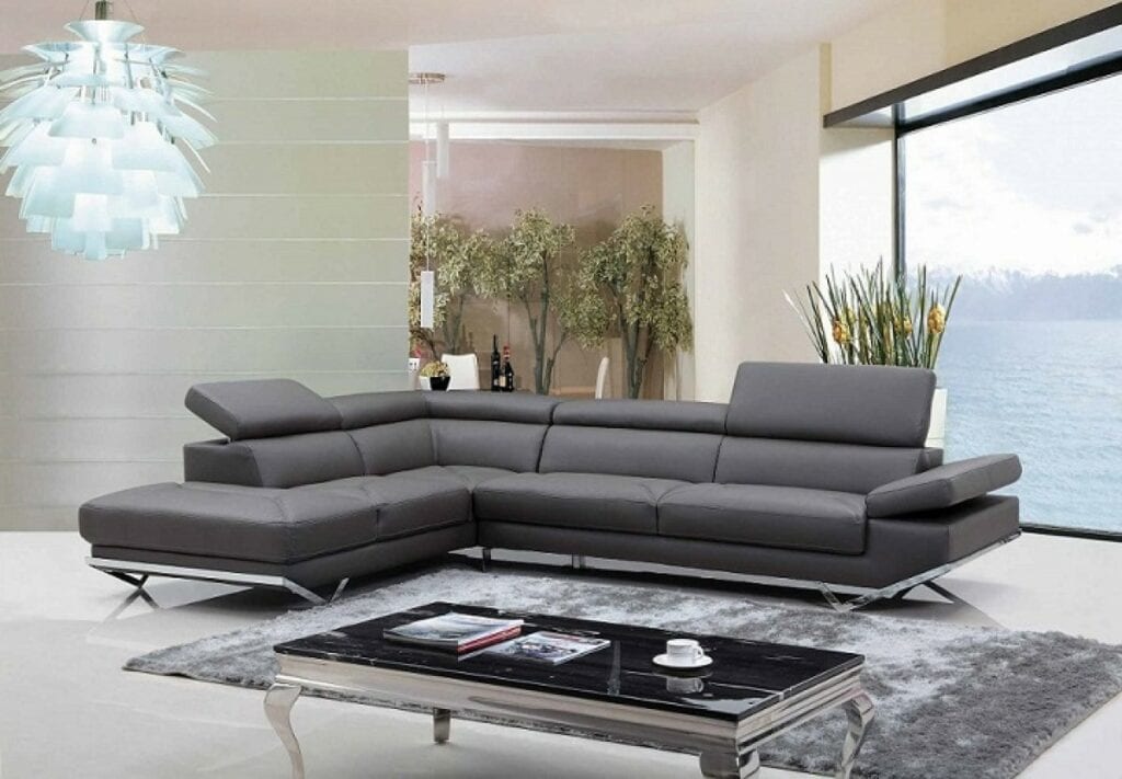 Divani Casa Quebec – Modern Dark Grey Eco-Leather Left Facing Sectional Sofa