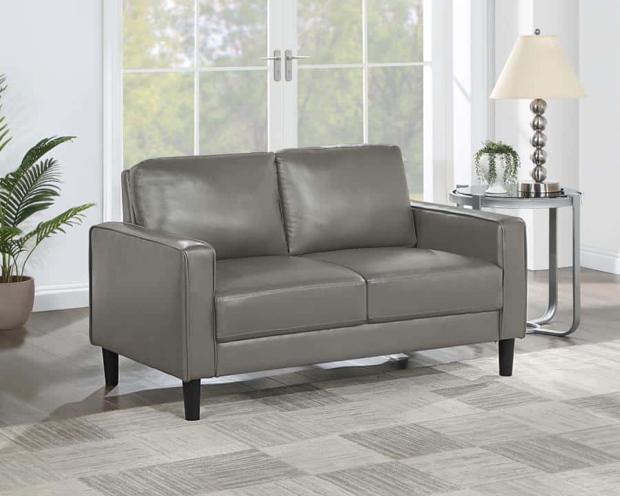 Ruth Upholstered Track Arm Faux Grey Leather Loveseat