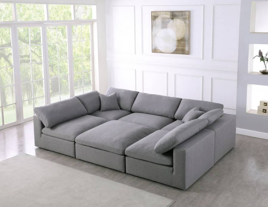 Serene Gray Linen Textured Deluxe Modular Down Filled Cloud-Like Comfort Overstuffed Sectional
