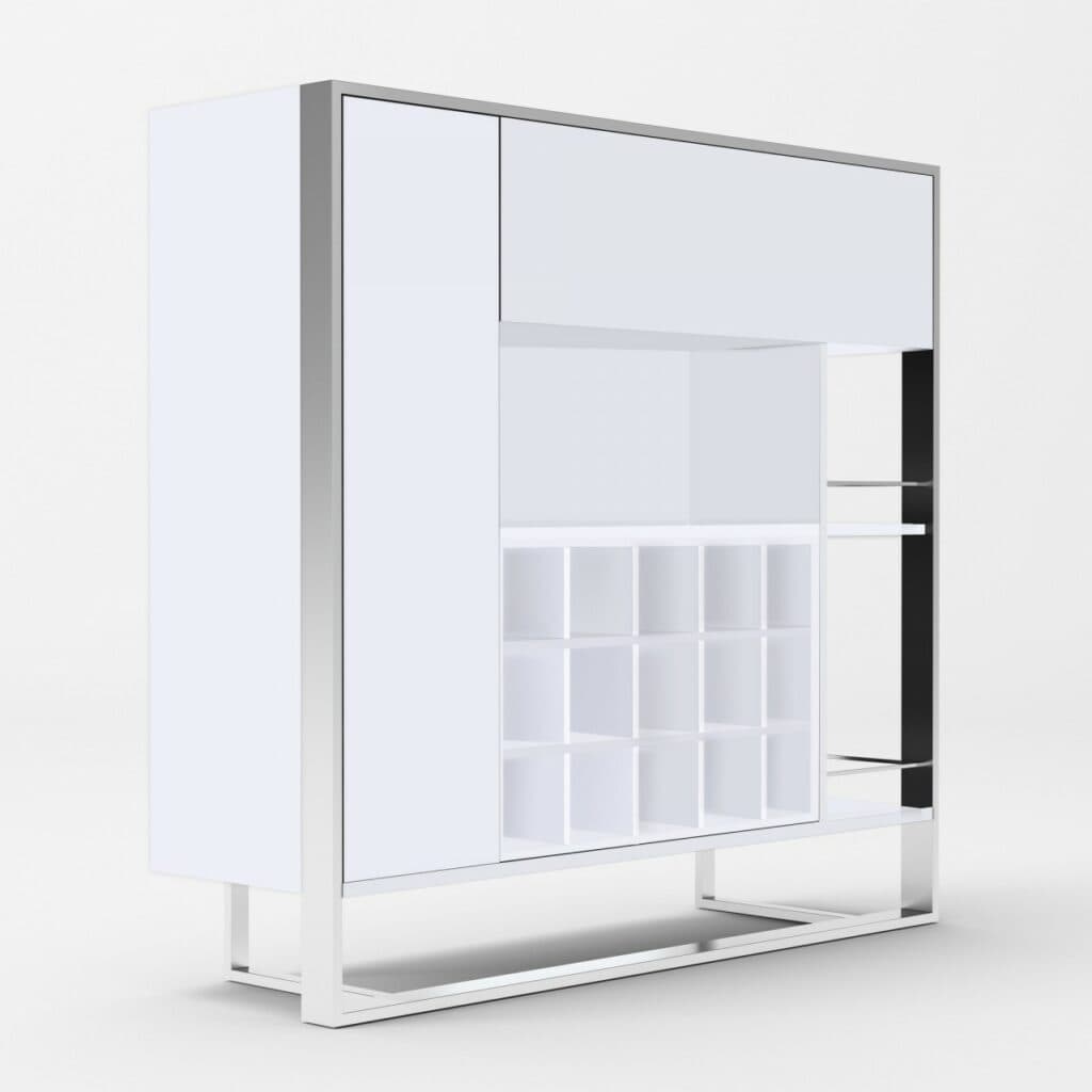 Modrest Fauna – Modern White & Stainless Steel Wine Cabinet