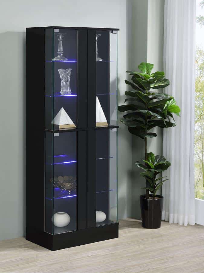 4-shelf Hexagon Shaped Curio Cabinet Black and Clear Curio