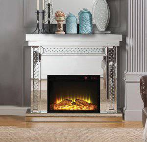 Noralie Mirrored & Faux Diamond Fireplace