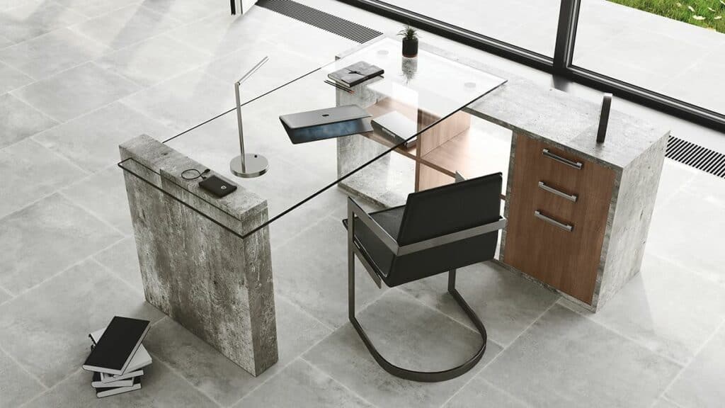 Nova Domus Boston Modern Glass & Faux Concrete Desk