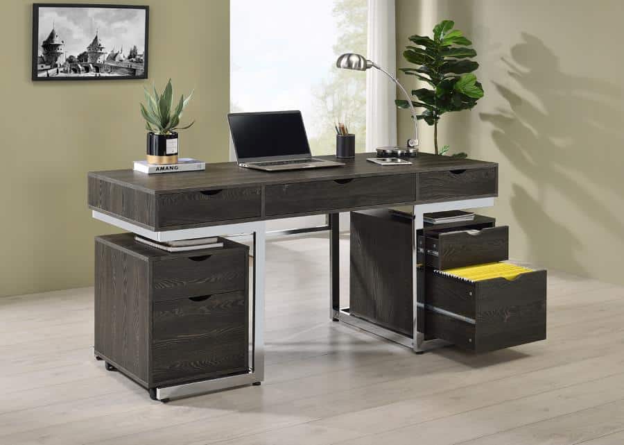 Irving 2-drawer Office Desk with Cabinet Cappuccino