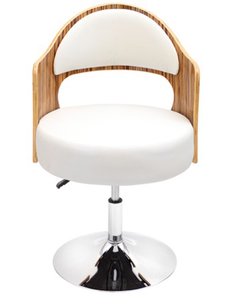 ChairBent wood and a thick cushioned leatherette seat and back rest give this chair a classic look that will flatter your home office or living room. A chrome base and hydraulic post for height adjustment complete the look.Dimensions: 21.5”D x 30.5 – 34.5HSeat Height: 17.5 – 21.5”