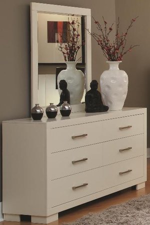 Dresser & MirrorEnjoy the modern style of this dresser and mirror combination, with clean lines, a rich dark or crisp white finish, and bold metallic hardware. The spacious six drawers of storage offer room to organize and store all types of clothing. Personalize your space by adding decorative accents to the top of the dresser, and add the mirror to bring extra depth and brightness into your room. The mirror has a sleek and simple frame, around sophisticated beveled mirror glass. Block feet complete the bold look of this dresser, perfect for your calming master bedroom.Dresser Dimensions: 64\”L x 17\”W x 32.50\”HMirror Dimensions: 32.75\”L x .75\”W x 39.50\”H*Item NOT Eligible for Refund/Return*