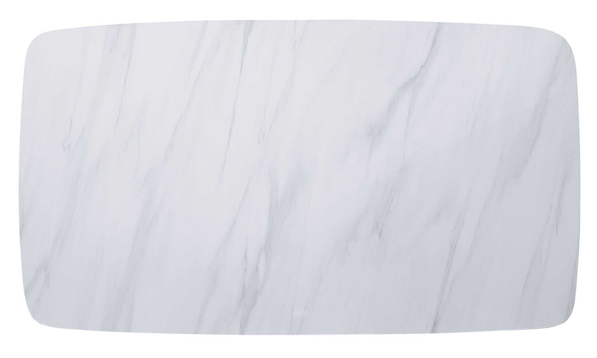 Bold, straight-lined metal work paired with a cool textured marble top creates this stunning modern minimalist work. The dining table is founded atop a metal trestle base shown in weathered gray oak finish. White rectangular marble top features beautiful and elegant grains, making your dining area feel brighter and more spacious. With clean, graceful lines and simple color scheme, the Madan Dining Table can work well in rooms of all styles.