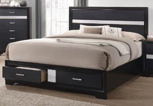 California King Storage Bed• Make your bedroom bright and cheerful with this contemporary design• An elegant and timeless look with just the right amount of “bling”• Hidden drawer for your jewelry or fine garments in each case piece lined with felt and has full extension glides• Bed has storage at footboard and is fully slatted• Exclusive rhinestone pull handles set this group apart from othersDimensions: Width: 74.75 x Depth: 88.25 x Height: 50*Box Spring Foundation Not Required**Item NOT Eligible for Refund/Return*