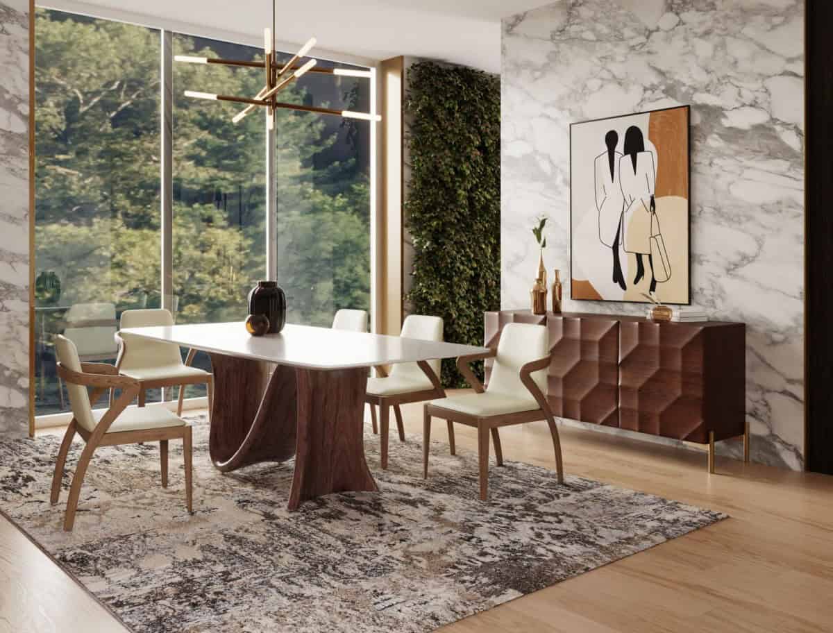 Modrest Carrizo – Contemporary Walnut + Marble Dining Table and Chairs