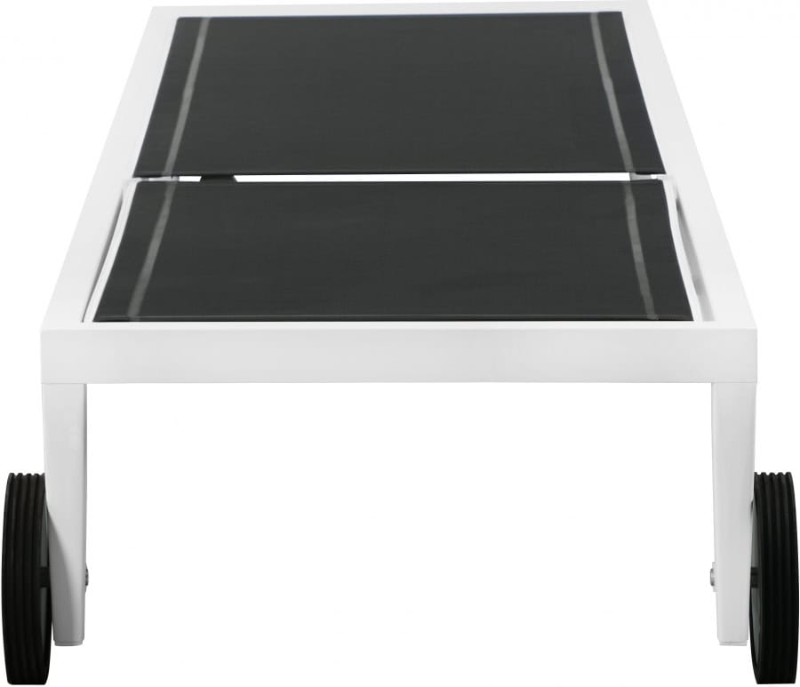 Pay homage to the sun worshipper within when you bring home this Nizuc outdoor patio adjustable sun chaise lounge chair. The white aluminum frame is the star of the show, giving it the staying power it needs to withstand use and abuse by sun revelers for years to come. The water resistant mesh fabric forming the body of the chair is perfect for keeping cool while you sun yourself, and because it’s mesh, it doesn’t hold on to moisture, which helps the chaise dry more readily after a summer rain. Wheels on the chair make it perfectly portable.