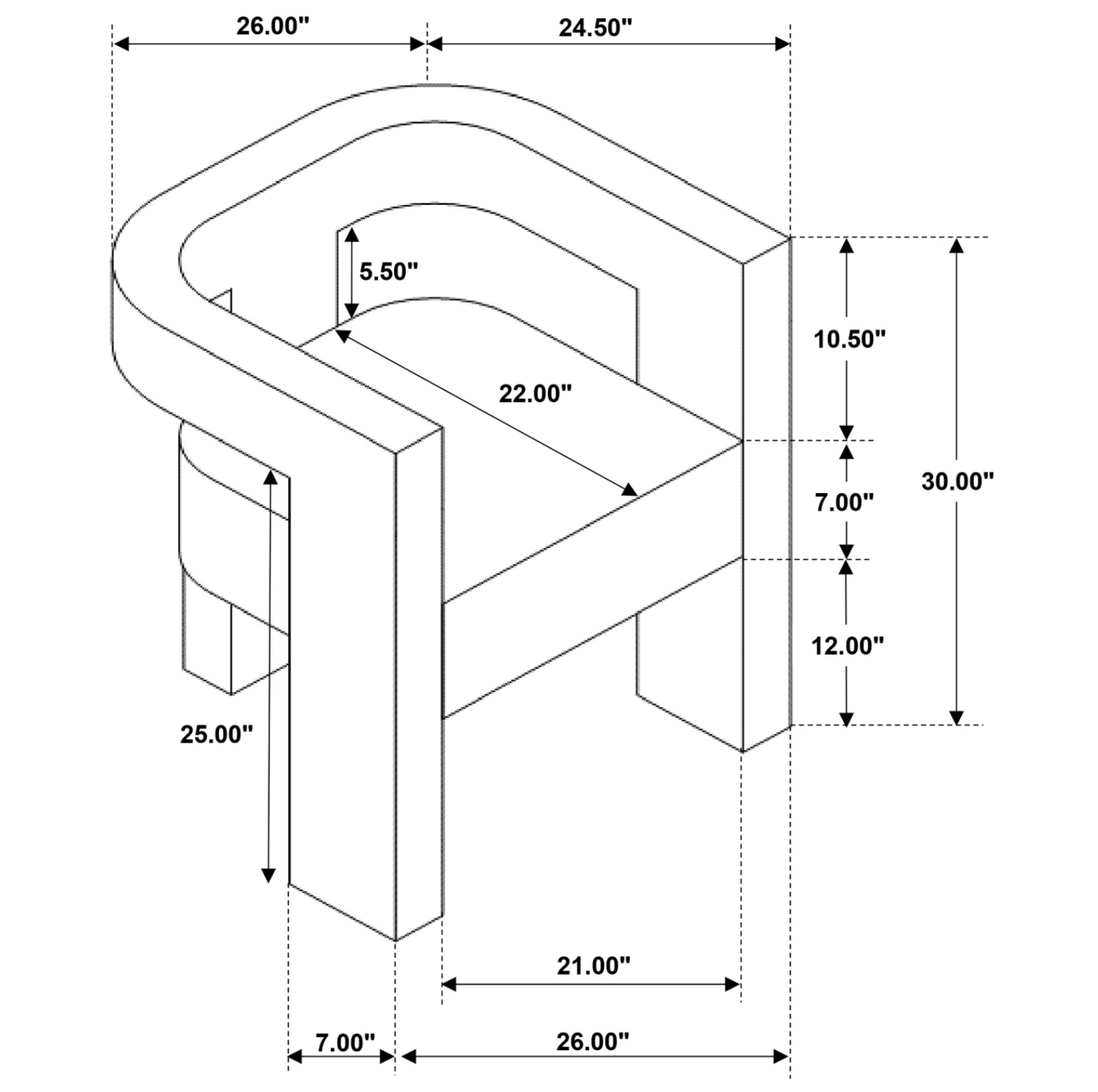 Enveloped entirely in the embrace of plush bouclé, this chair redefines the art of relaxation with its all-fabric design. The seamless transition from the cushioned seat to the curved arms, all robed in the same soft fabric, creates a cocoon of comfort. This chair’s silhouette is a gentle wave of tranquility, its form an ode to the curves found in nature. The uninterrupted bouclé upholstery invites a serene tactile experience, transforming the chair into a modern sanctuary. It’s a haven of softness, a singular statement of elegance and ease.