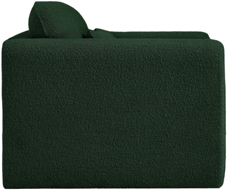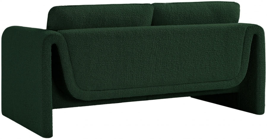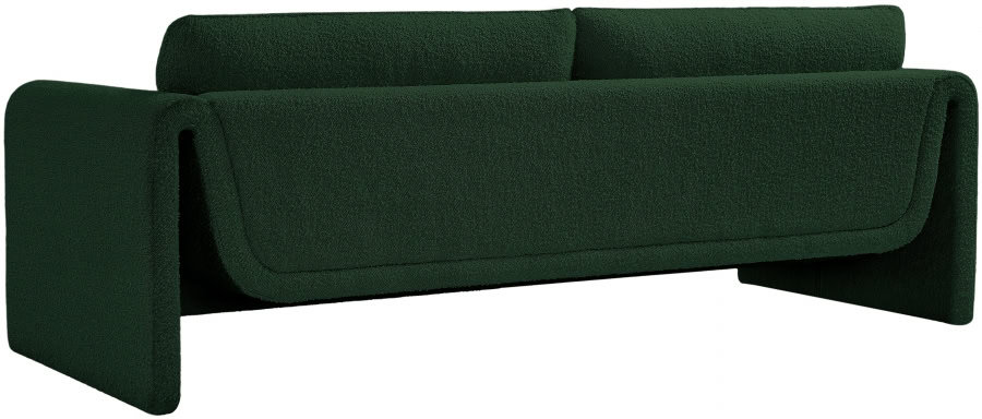 Impress family and guests alike with this Stylus boucle fabric sofa. This modish chair oozes contemporary panache with its curved arms and unexpected design elements. Thickly padded seat and back cushions cradle your body in supportive comfort while the rich green boucle fabric caresses the skin and leaves you feeling relax and recharged. A wood frame ensures that the chair withstands the rigors of daily use without losing its lovely yet contemporary look