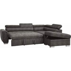 SectionalExperience simplicity with this Thelma sectional sofa with ottoman. Upholstered in gray polished microfiber, this sectional sofa features full foam seat cushion and adjustable headrest for maximum comfort. In addition , pull-out sleeper provides extra convenience for unexpected guests. With its classic but contemporary design, it will fit perfectly in any living room. Sectional Dimensions: 83\”L x 83\”D x 33\”H