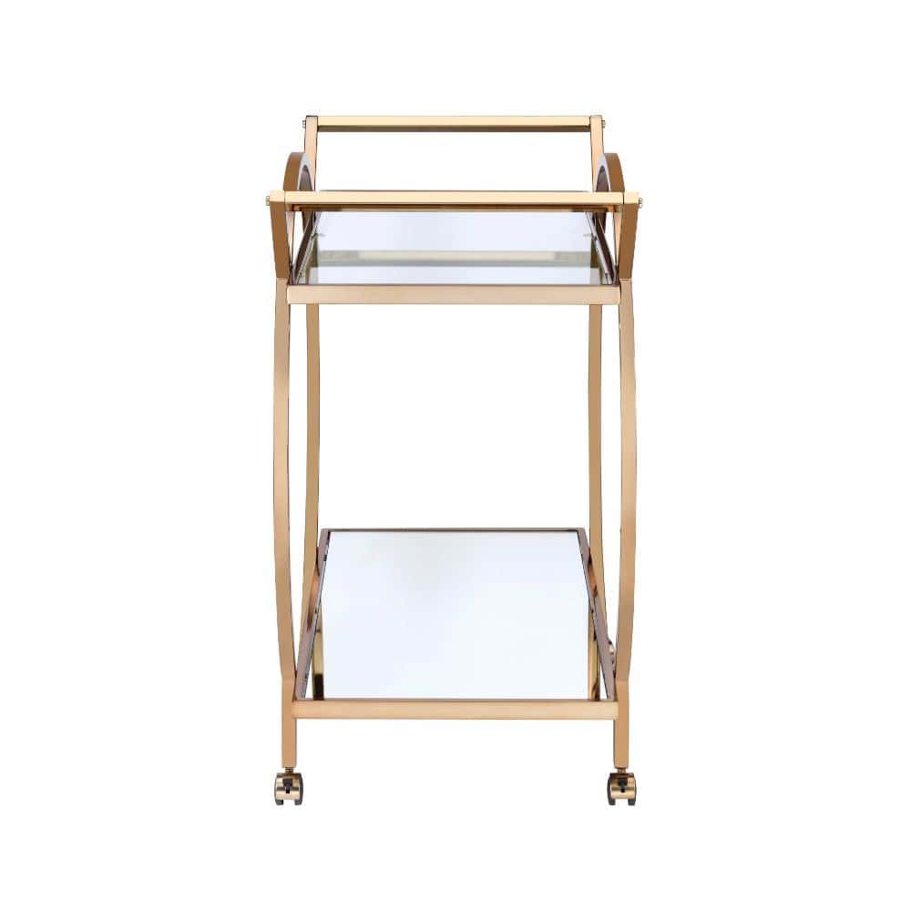 Roll out an artful decor anywhere in your home with this Traverse serving cart. The beautiful frame is crafted with quality metal tube and finished in elegant champagne. With the glass top shelf and mirrored bottom shelf, its timeless design will liven up the entire atmosphere.