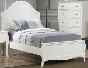 BedCreate a gorgeous focal point in your youth\’s bedroom with the addition of this wood bed. The piece carries a crisp white finish and features classic details like flared posts, simple curved molding. You can have a soothing getaway into your child’s bedroom by adding this attractive bed to the decor. This bed is available in twin and full sizes.Dimensions: 80.25\”L x 43\”W x 52.25\”H*Box Spring Foundation Required**Item NOT Eligible for Refund/Return*