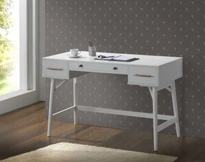 DeskMid-century modern style finished in white. Three drawers for storage. Available in white and walnut.Dimensions: 47.25\”W x 23.75\”D x 29.50\”H*Item NOT Eligible for Return/Refund*