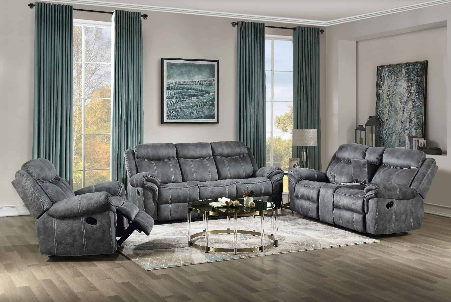The sleek and stunning Zubaida reclining sofa group fuses charm and design to create the ultimate in relaxation. This motion sofa set will perfectly accommodate any contemporary living room setting by providing plush and stable support and spacious storage function. Fine upholstering and a reinvented modern style, enhance your living room area with this unique set.